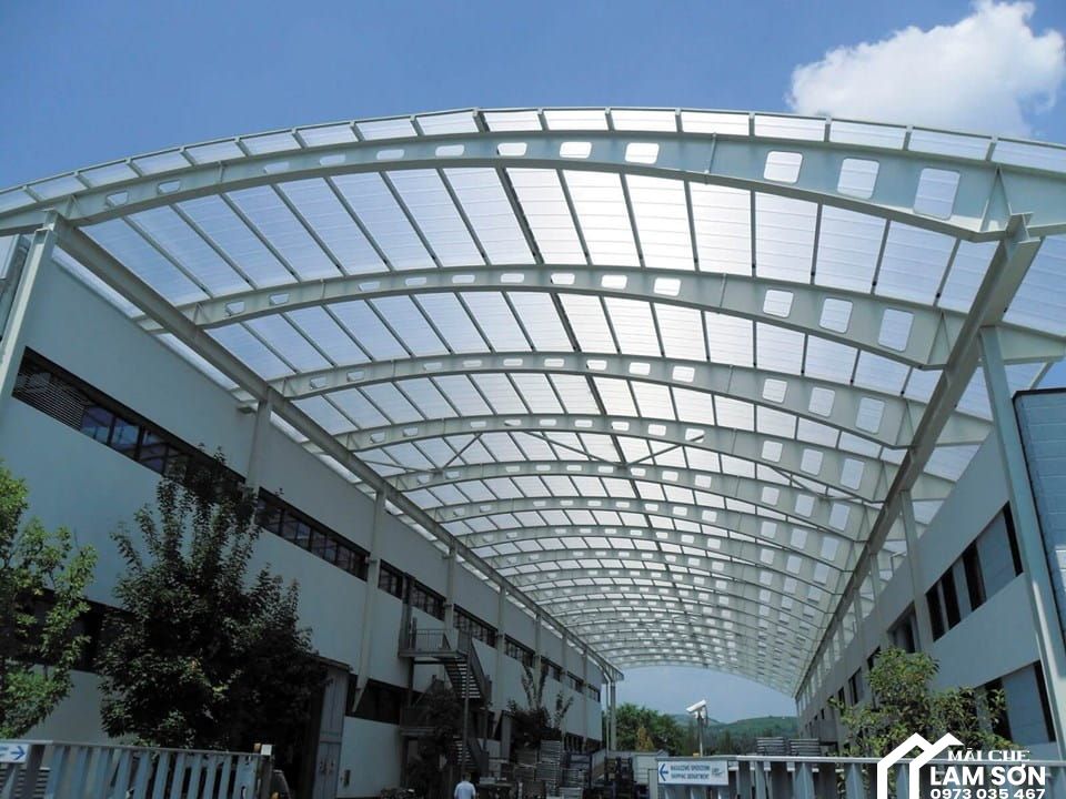 Mái vòm tôn giúp che phủ diện tích lớn, khả năng chống nóng – chống mưa cực tốt.